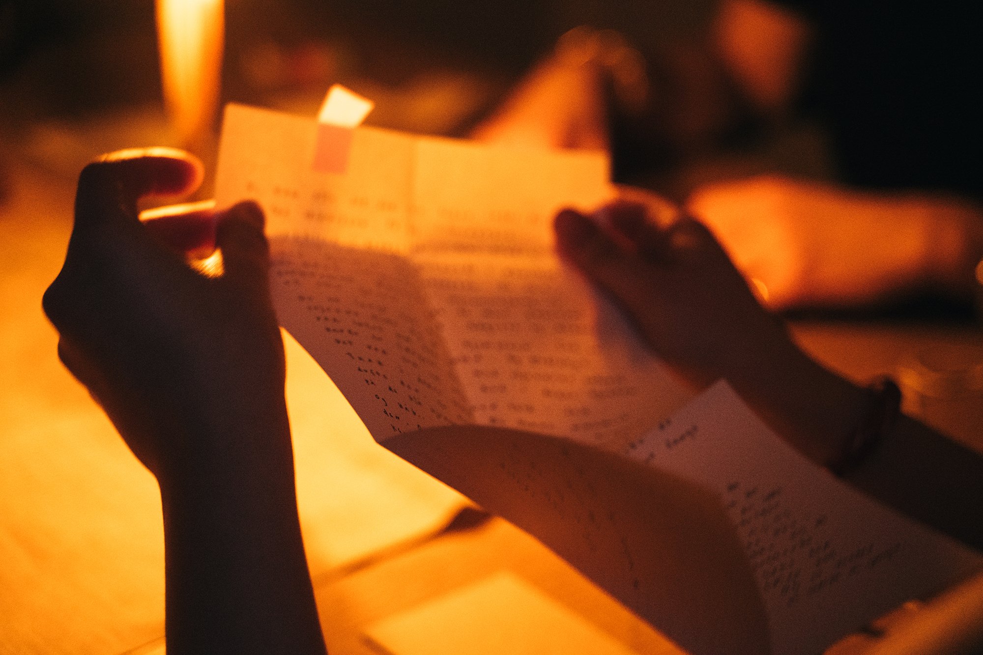 No preparation is needed - only a table where you can sit close and a modern smartphone for the soundscape. The experience is fully guided - with notes to be read aloud, boxes to open, instructions to follow.